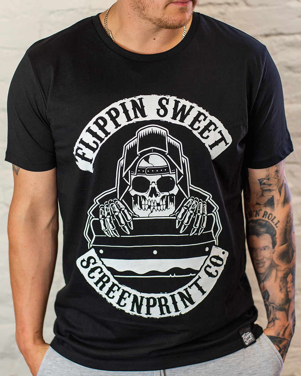 Danny is the founder and lead screen printer at The Flippin Sweet Print Co. Driven by a real obsession with quality, he pours as much passion into the print process as he does into his love of motorsport and rock and roll music. Every shirt that leaves the shop gets the same level of care — no half measures.